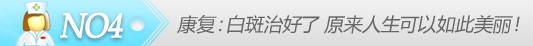 但一旦超过这个期限,等到白斑严重扩散,甚至连头发都变白,这时可以说白斑病治愈的难度就会非常巨大、患者 所承受的痛苦、治疗的花费也相应的增加 很多。想要真正避免白癜风给患者带来的社会歧视、心理问题和健康影响, 唯一有效的方法就是做到白癜风早发现、早治疗,这样才能早日康复,过上健康 人的生活!